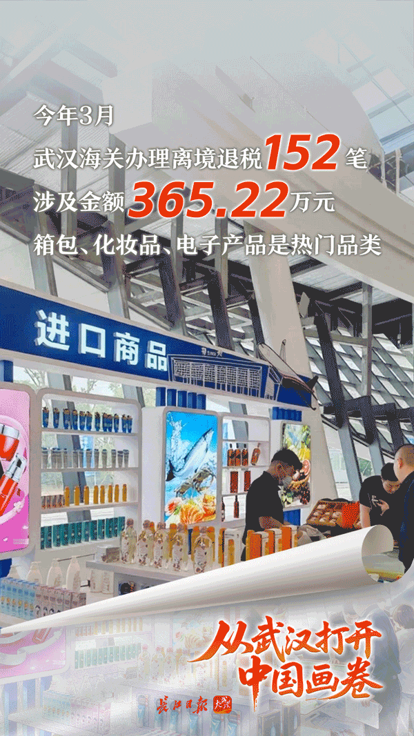 今年春天,入境游市场比去年更火。来到武汉的外籍游客,开启“买买买”模式。武汉海关数据显示,仅今年3月,就办理离境退税152笔,涉及金额365.22万元,箱包、化妆品、电子产品是热门品类。