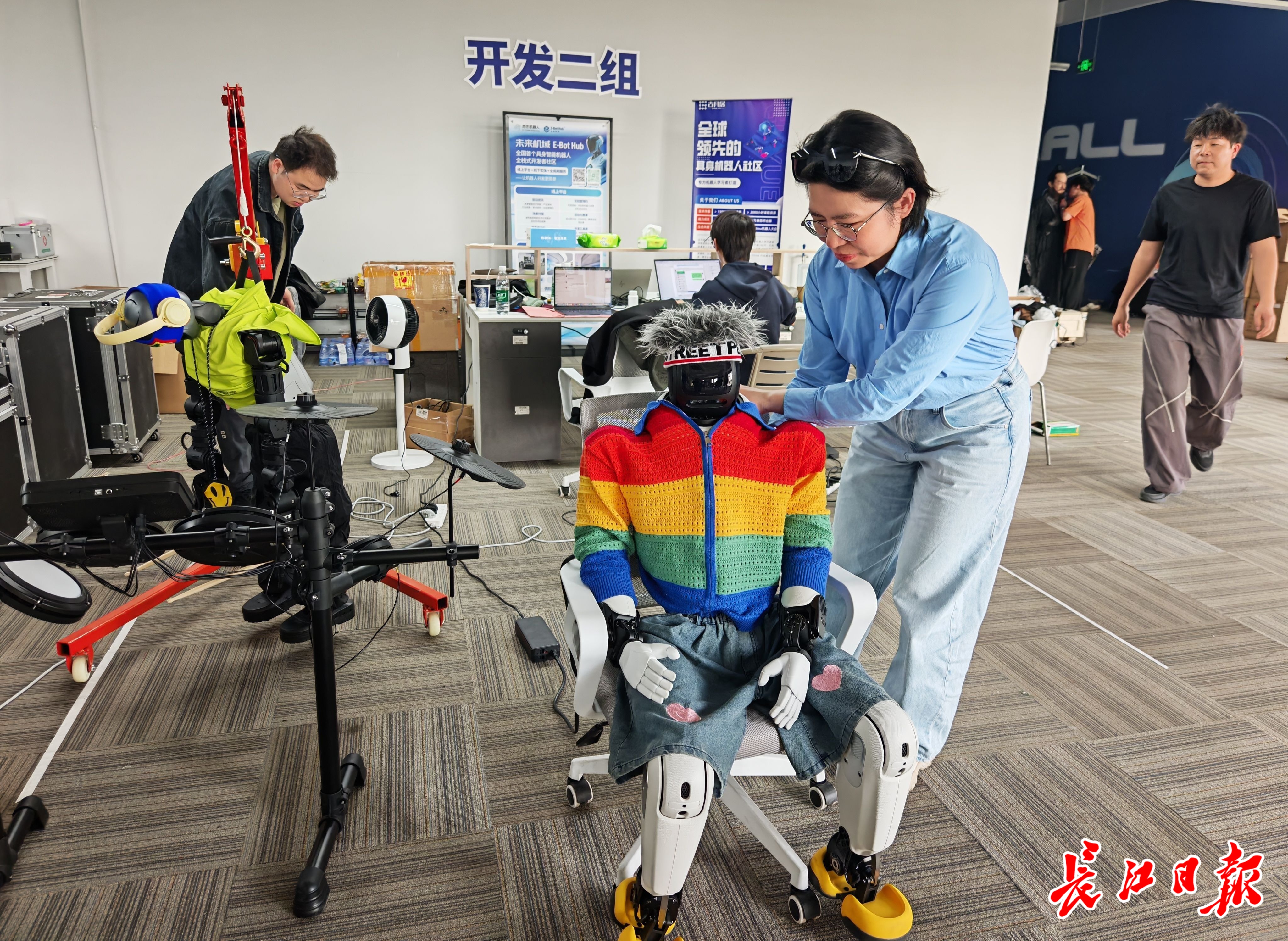 精锋微控/古月居的工程师在北京未来机域开发者社区调试机器人乐手。记者柯丽芬摄