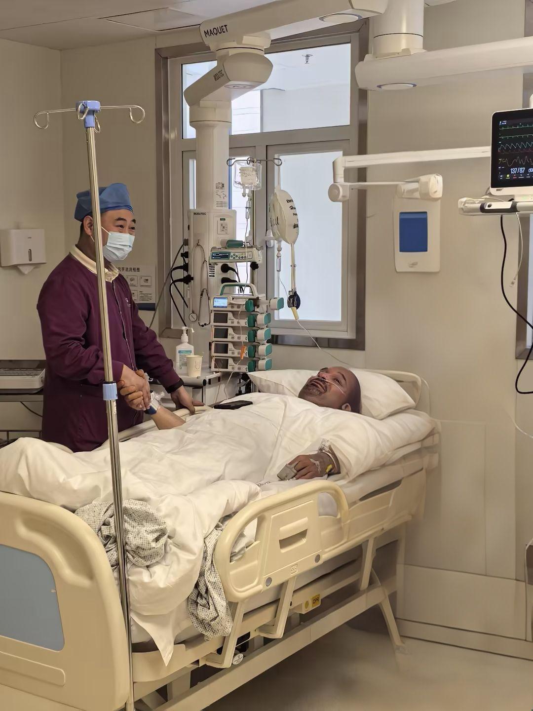 完成手术后,维克托在ICU里。 泰康同济(武汉)医院 供图