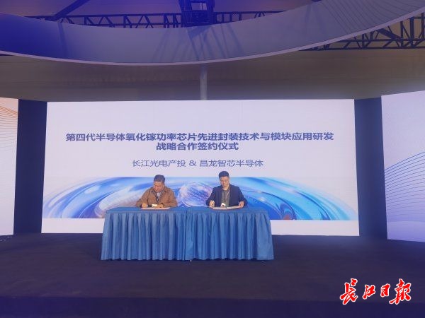发布会现场,昌龙智芯和长江光电产投签署战略合作协议,双方将在功率芯片先进封装技术与模块应用领域深化合作,携手推动产业化落地。