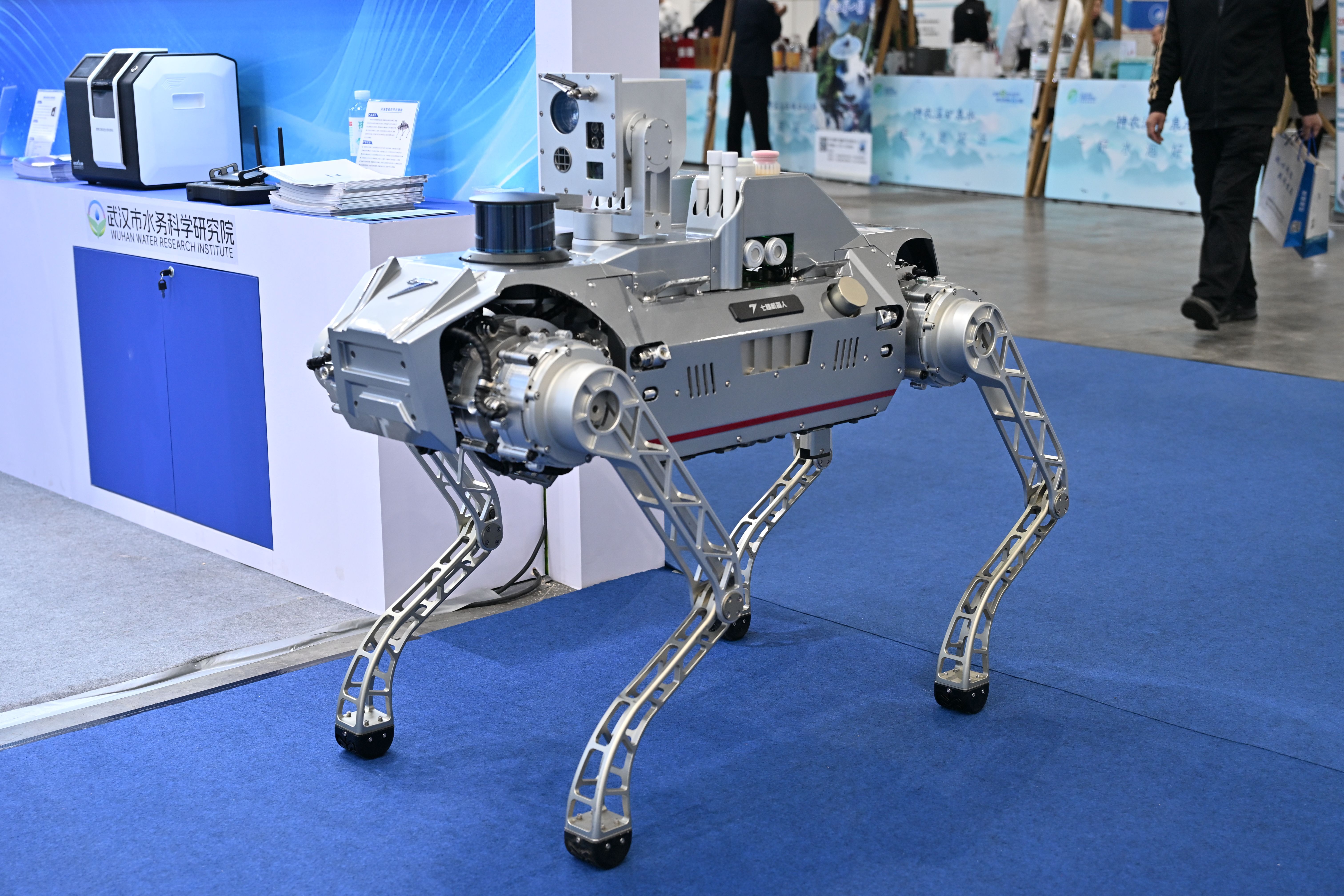 巡检机器狗亮相武汉市水务科学研究院展台。范芃 摄