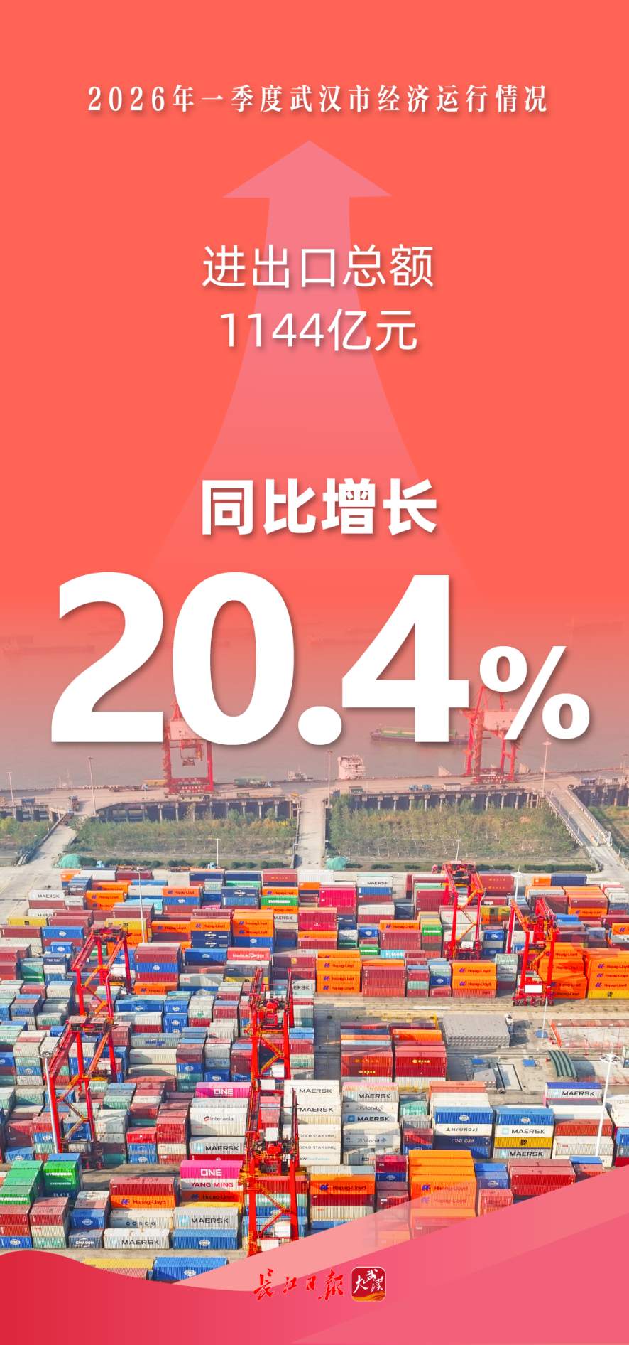 长江日报大武汉客户端4月24日讯(记者陈永权)4月24日,武汉市统计局、国家统计局武汉调查队联合发布2026年一季度经济运行数据。初步核算,一季度全市地区生产总值(GDP)达5042.99亿元,按不变价格计算,同比增长5.7%,高于全国、全省平均水平,增速创近四年同期新高,经济运行保持平稳较快增长,实现良好开局。