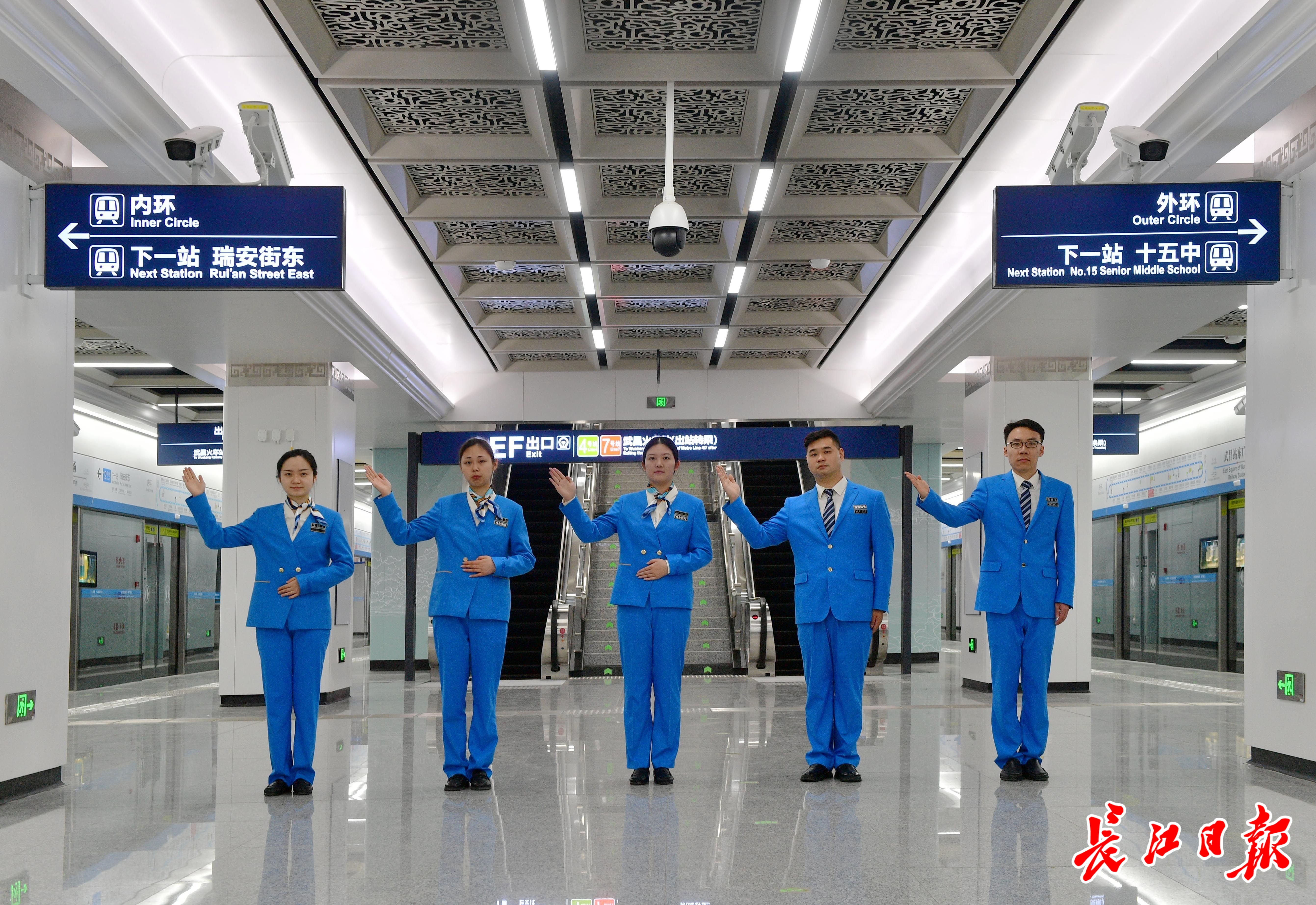 12号线员工身着新款“扬子蓝”制服。记者李永刚 摄